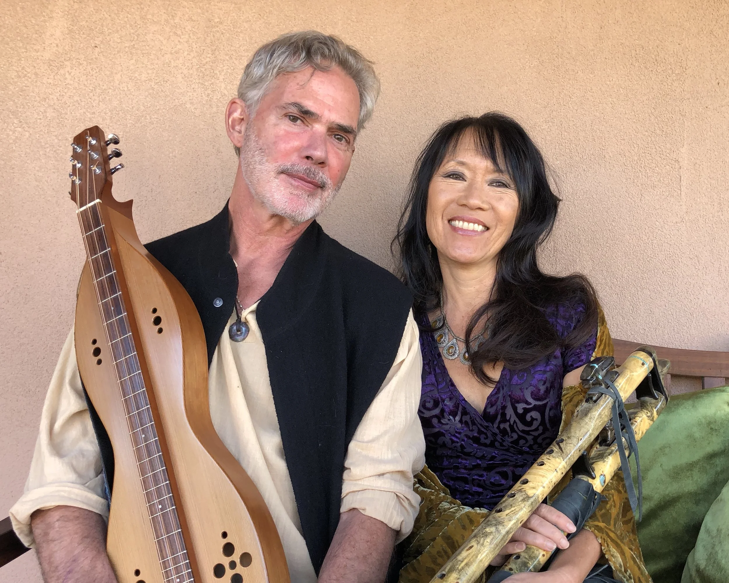 Suzanne Teng and Gilbert Levy are married musical partners who compose original global instrumental music that is influenced by Suzanne’s classical training and Gilbert’s background in jazz and R&B. They have released seven critically acclaimed albums that have garnered numerous prestigious international awards such as the Independent Music Awards (twice), International Acoustic Music Awards, Los Angeles Music Awards, New Mexico Music Awards, Akademia Music Awards, Global Music Awards, Peace Song Awards, Native American Style Flute Awards (album of the year) and the InterContinental Music Awards. Their recordings have been licensed for numerous soundtracks and was featured on NBC’s America’s Got Talent. Suzanne has been described by the Los Angeles Times as a “brilliant flutist” who “plays music for the soul.” Originally from Berkeley, California, she received her Master’s degree in music from Boston University’s School for the Arts and, after enjoying world travels, furthered her passion for world music, pursuing her Ph.D. in ethnomusicology at UCLA. She plays an array of wind instruments from around the world and is an endorsed artist for YAMAHA representing their alto and bass flutes. She has performed on hundreds of albums, film/television/commercial soundtracks and performed on the Survivor Live final shows that had 50 million viewers. Gilbert was born and raised in New Orleans where he began playing drums at an early age and by his late teens was performing professionally in R&B bands in clubs on Bourbon Street and with jazz greats such as Wynton and Branford Marsalis. He moved to Los Angeles in his late 20’s and played pop music in numerous bands and on several major label recording projects before gravitating towards world drums.